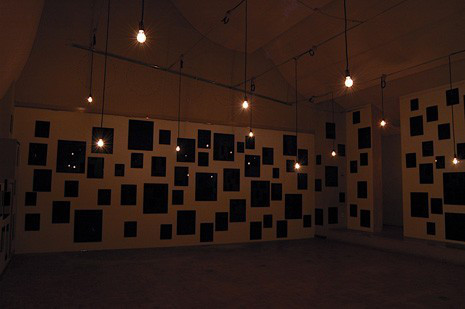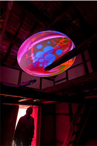 古い小さな納屋中で映像が流れるやつ。