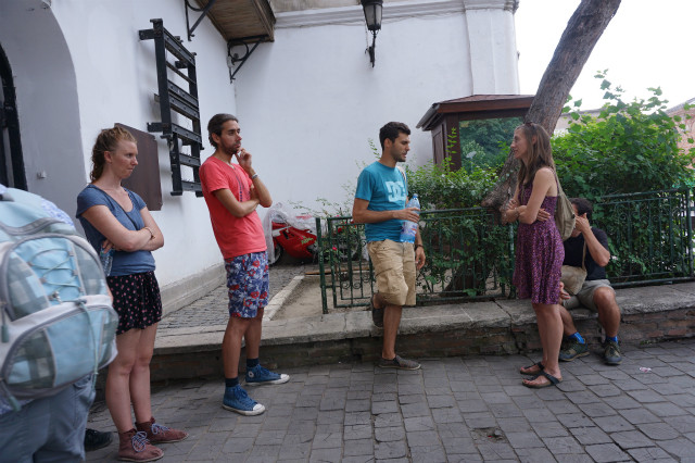 時計の前集合でウォーキングガイドツアーに参加。偶然同じ宿に泊まってる香港人に会う。