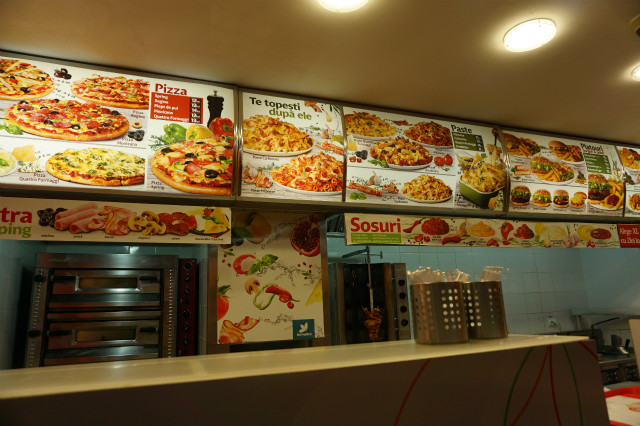 ファーストフード店でサラダとポテト。たしか約20Lei(500円)
