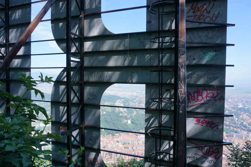タンパ山の上に朝登った「BRASOV」の看板。一応、ハリウッドのパクリではないそうな。