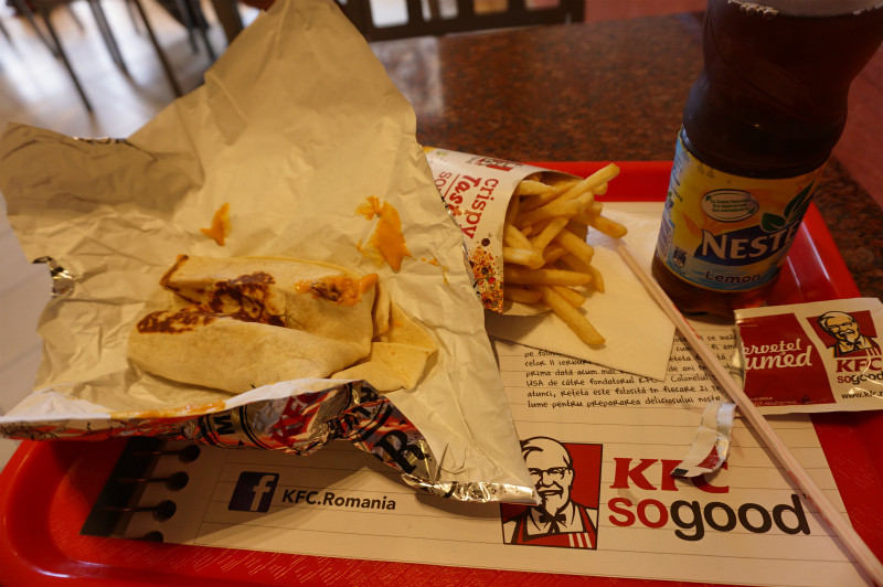 野菜が食べたくて、すがる思いでケンタッキーのラップサンドを頼む。