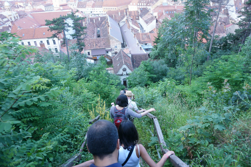 行きは山道を登っていったんだけど、帰りはかなり急な階段。一人倒れたら共倒れ。