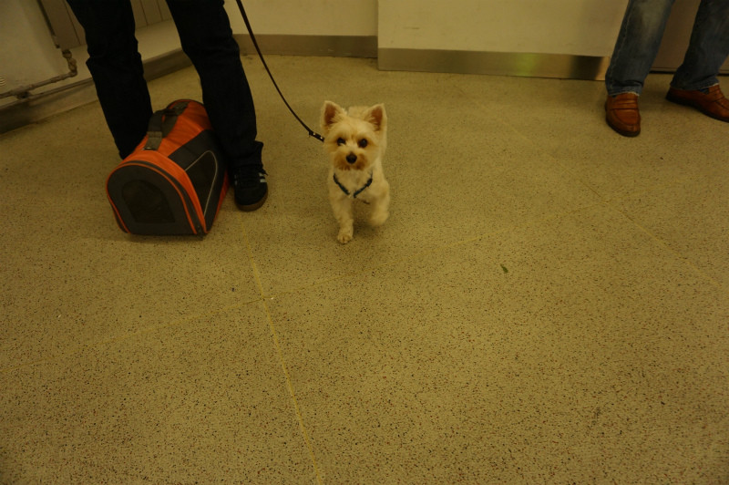 空港内で待つわんわ