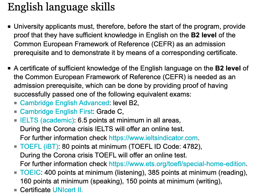 ・ UNIcert(ドイツの英語試験)で一定以上のグレード