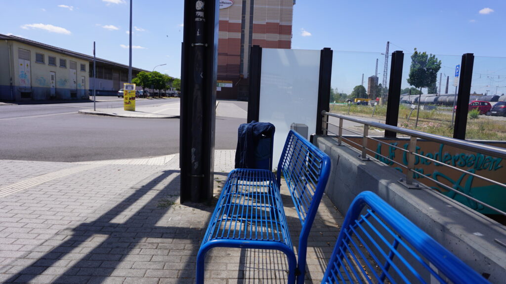 途中、公園もお店もなーんにもなく休めるところがなかったので、ベンチを探して駅の方に向かいます。