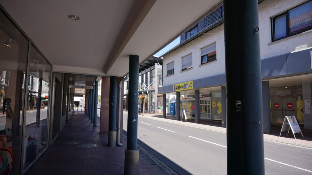 アーケード街。パン屋、レストラン、洋服屋、銀行・・・あとなんかメガネ屋が多い