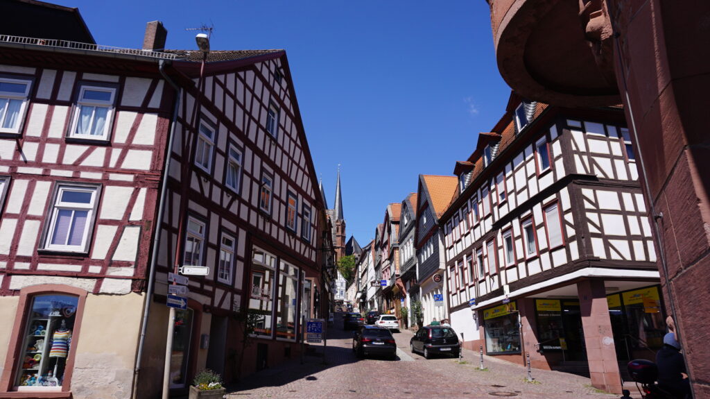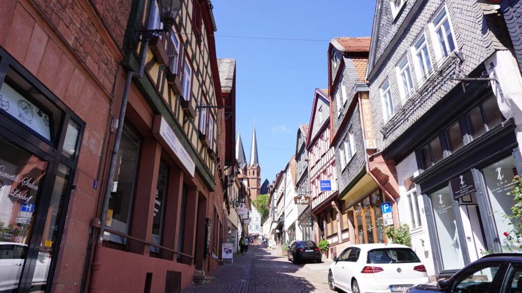 ヘッセン州 ゲルンハウゼンはフランクフルトの右上(北東)に位置し、ドイツ・メルヘン街道の南端付近にあたります。人口はなんと22,000人ほどの、かなり小さな町。
