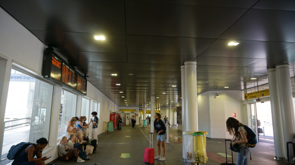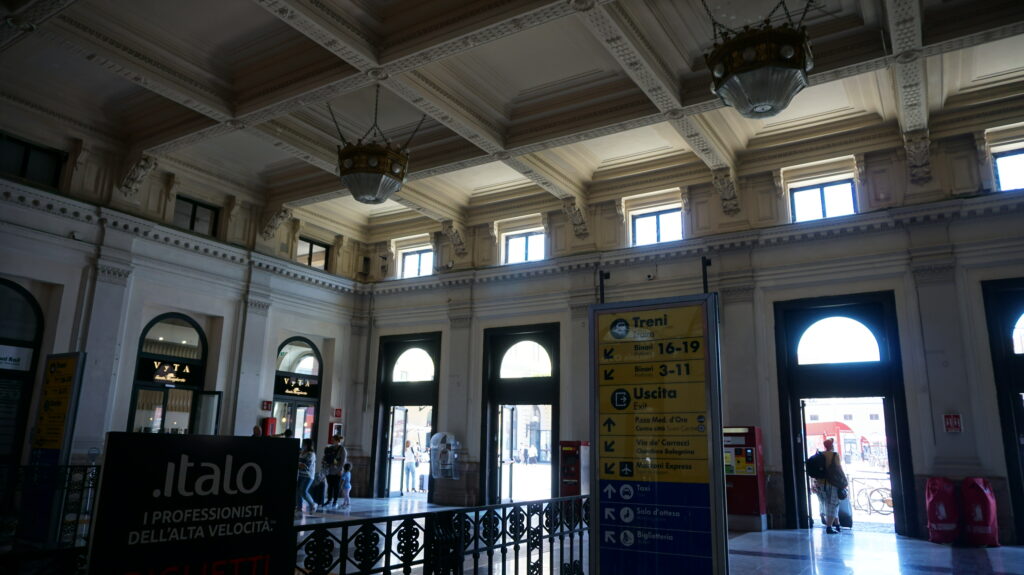 たったの7分でボローニャ中央駅に到着。値段は€9.2 とお高めだけど、便利できれいで安全。