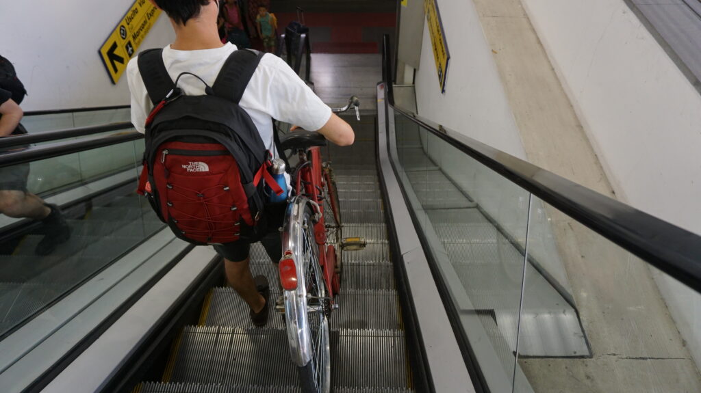 ヨーロッパの多くの電車は自転車OK(チケット別)なので、こんな場面によく出会います。