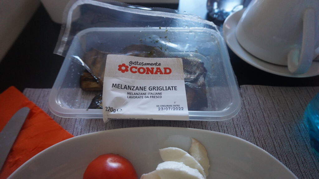 観光地だからか、パッと見でわからないスーパーが多い。ちなみにCONADはスーパーチェーンのひとつ。野菜が食べたかったので、メランザーネ(ナス)の焼いたやつみたいなパックを買いました。