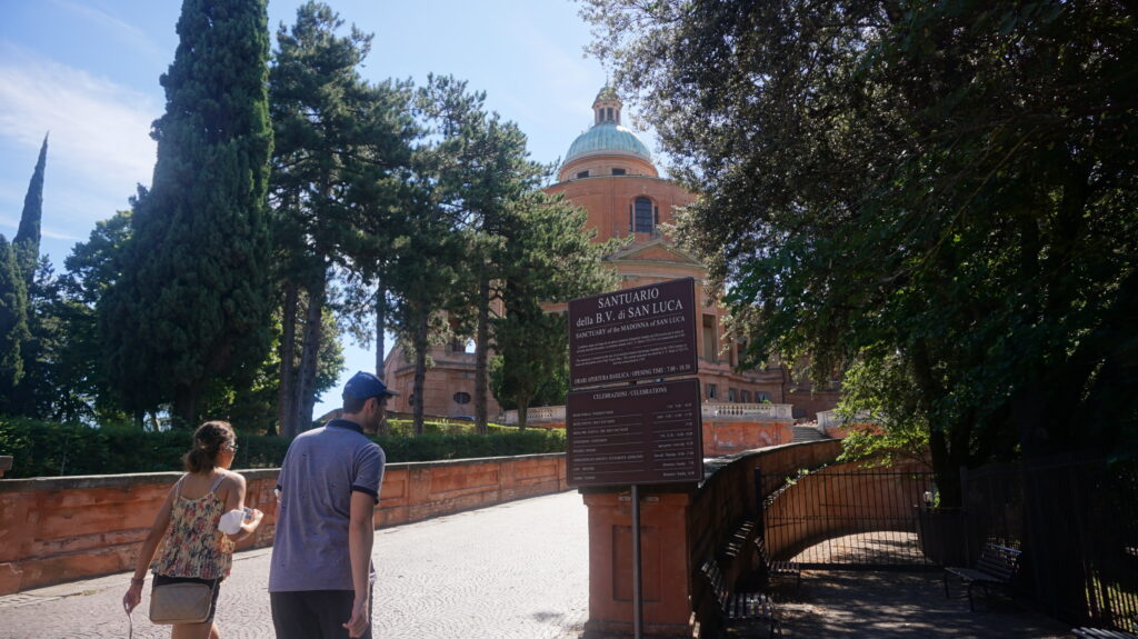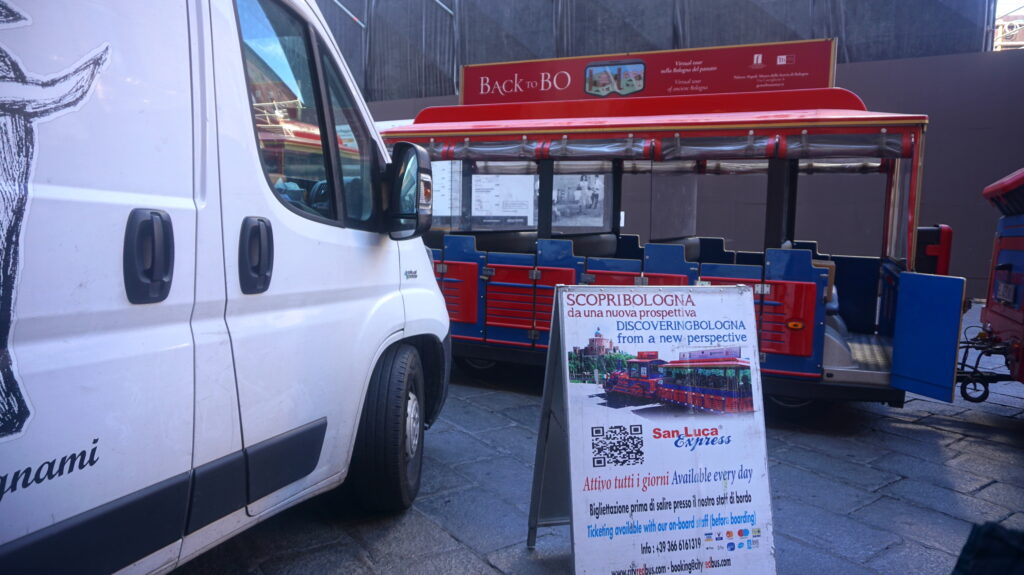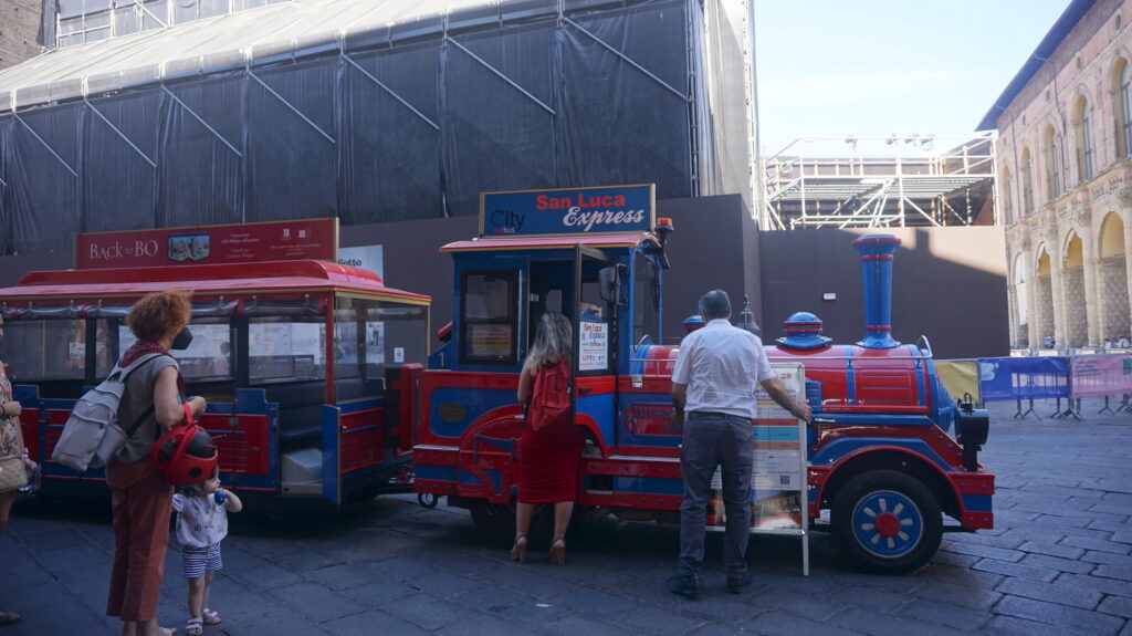 サン・ルカ教会にいくには、長い長い上り坂の回廊を進む必要があるのですが、このバスなら頂上までいっきに運んでくれます。教会の展望チケット付きで往復€17