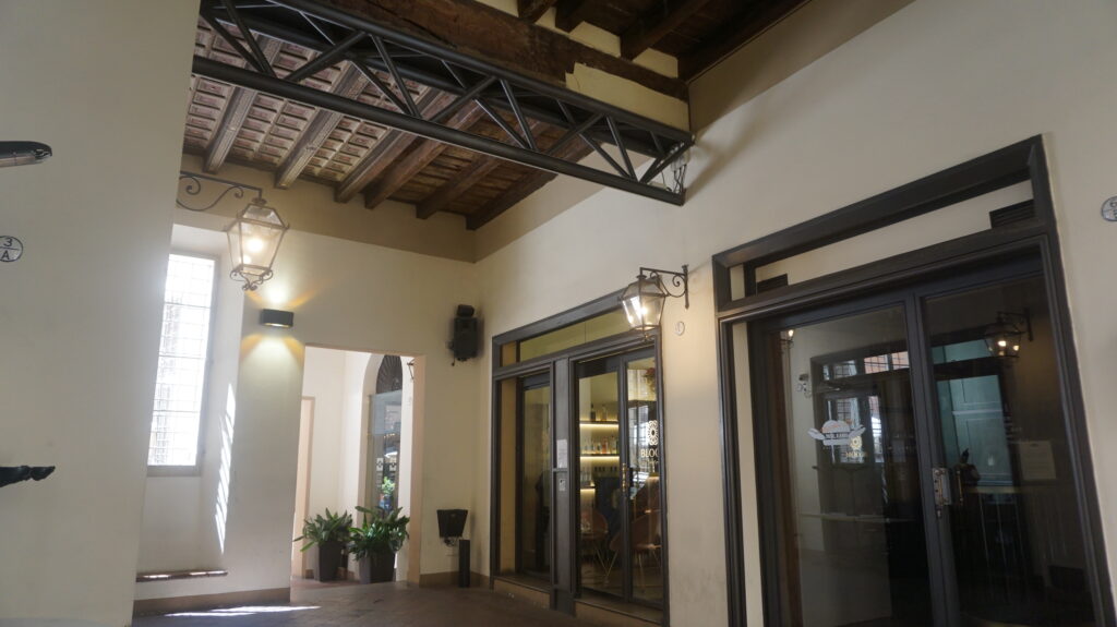 こちらの建物はイソラニ伯爵の持ちビルで、数年にわたる復元作業によって徐々にオリジナルの木造りに生まれ変わっているらしいです。