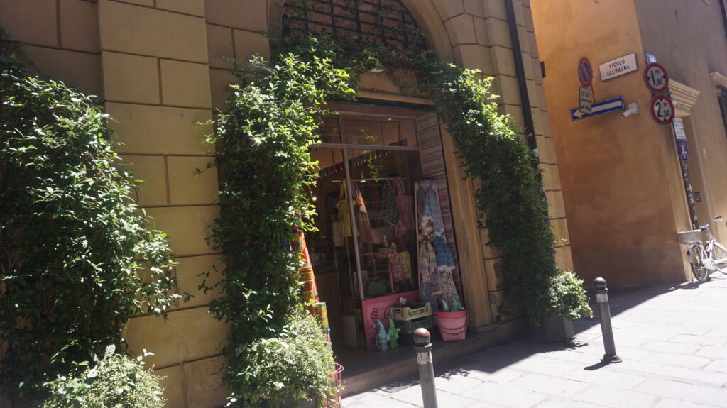 さすがお洒落の国、イタリア。あちこちにブティックやコスメのお店が並んでいます。どこもこんな素敵な建物に入っててかっこいい。