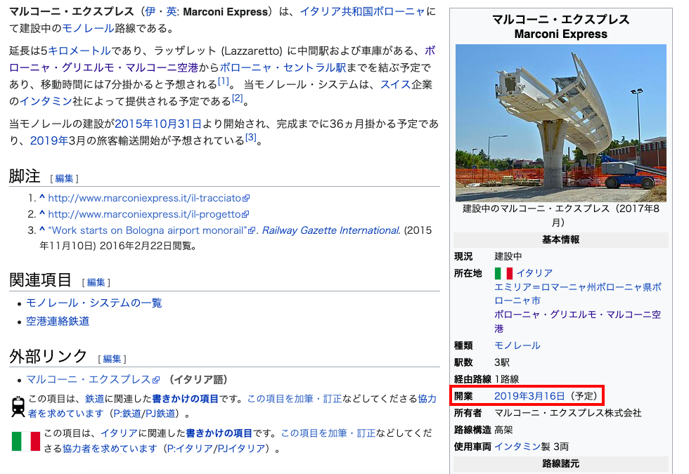 日本語Wikiをみると、「2019年3月運行開始予定」って・・・ん?
