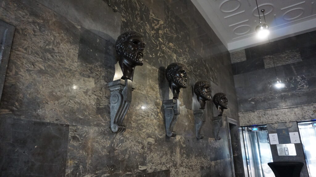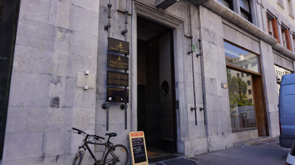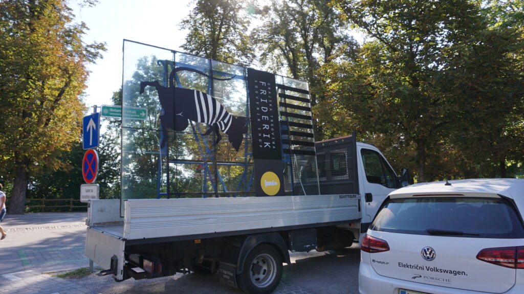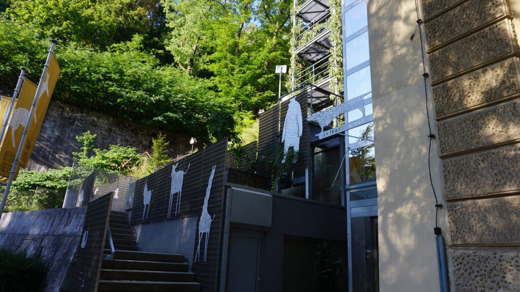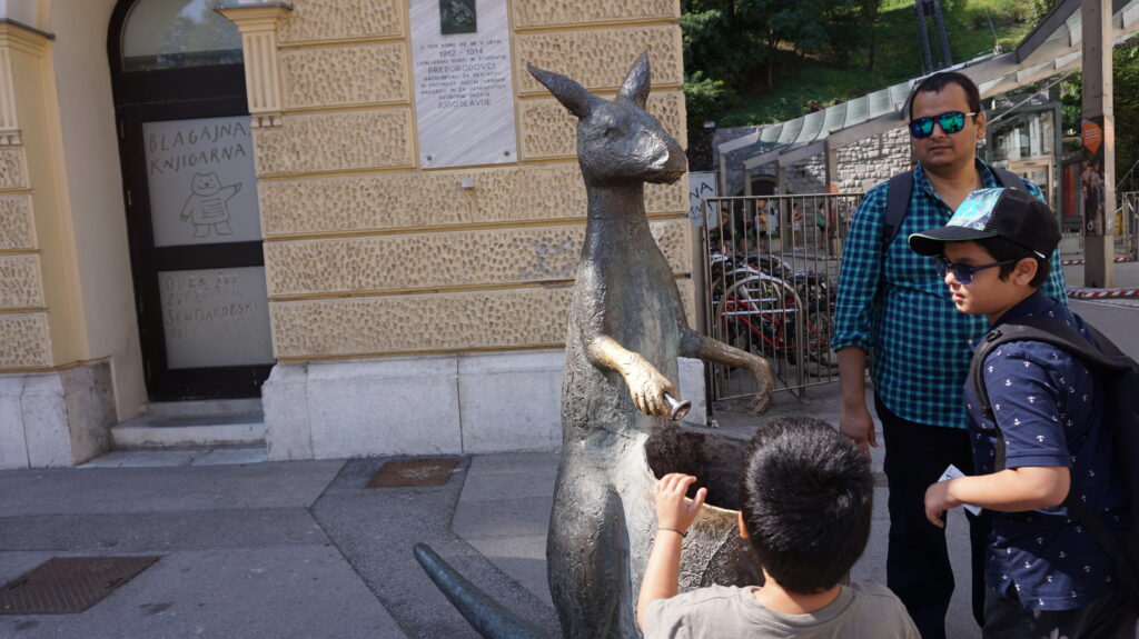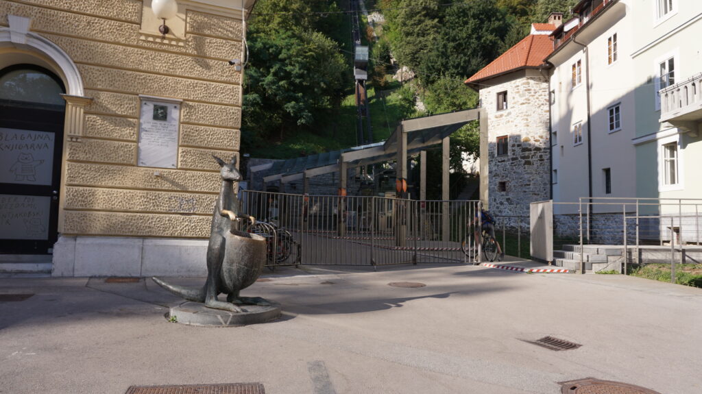 看板はスロベニア語オンリーで曜日と営業時間が記されていたのだけど、全く読めず・・・まだ8時半すぎなのでやってないっぽい。隣のカンガルーはなんだろ・・・。
