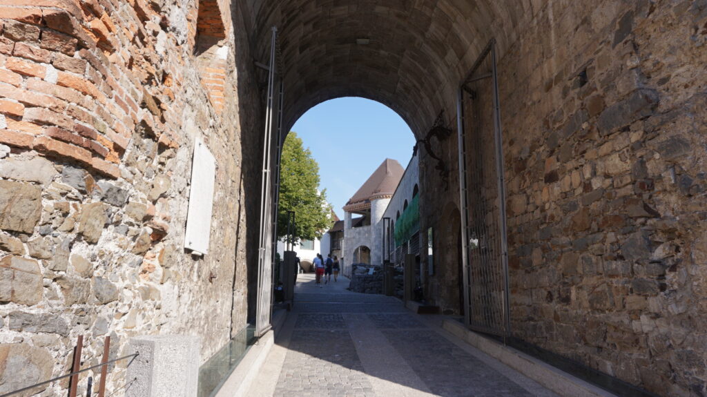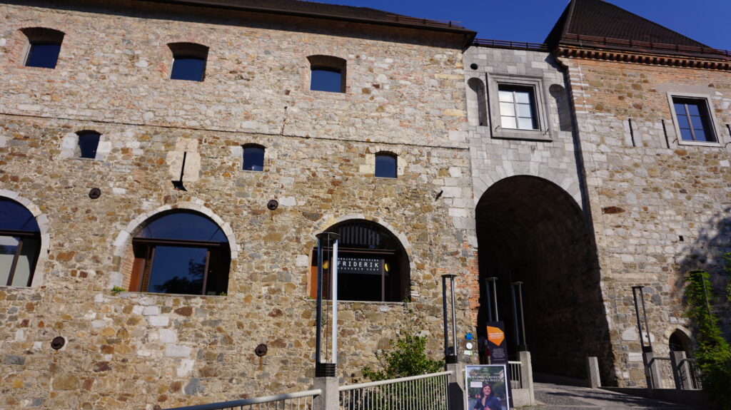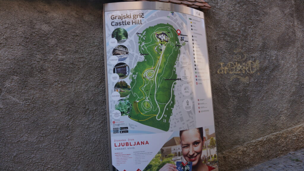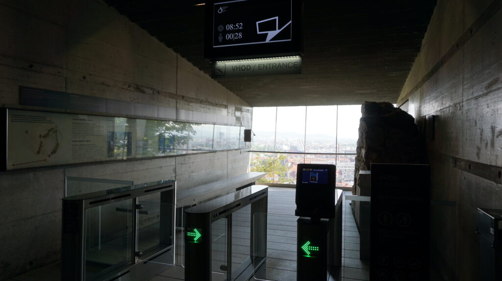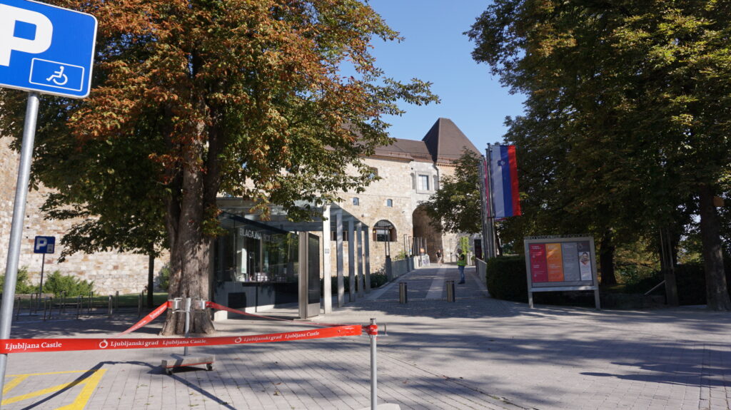 お城入口に来ました!!!チケット売り場を覗いてみましたが、営業時間の部分がリュブリャナ語オンリー。
