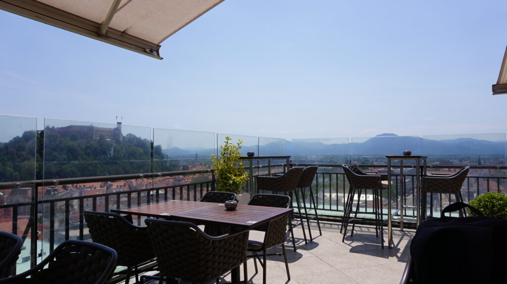 11階!!目の前にリュブリャナ城を望む最高のカフェーー!!