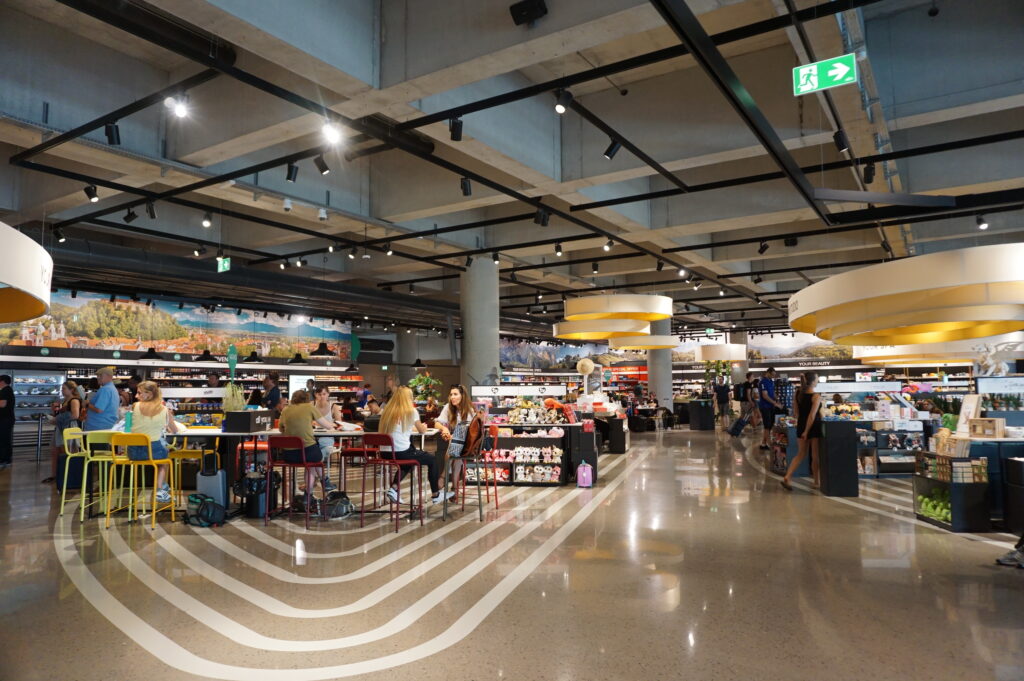 手荷物検査を受けてすんなり中へ。お土産コーナー、カフェがぎゅっとまとまってる。