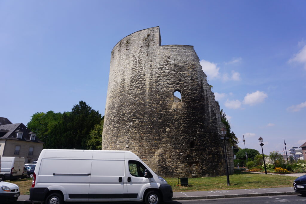 古い塔。100年戦争のときにこのあたりでジャンヌ・ダルクが捕まり、その後イギリスに引き渡され処刑されてしまったそうな・・・。
