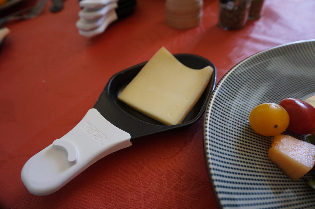実は・・・ラクレットってどんな料理なのかサッパリわかってなかったんですが、鉄板でチーズをトローットロにしてポテトやパンと一緒に食べる料理でした。お好みでカリッカリに焼いてもOK。うますぎて泣いた。。。