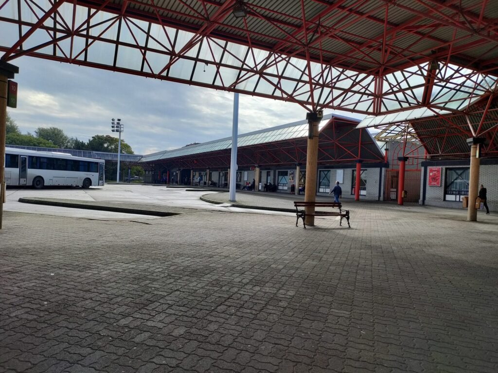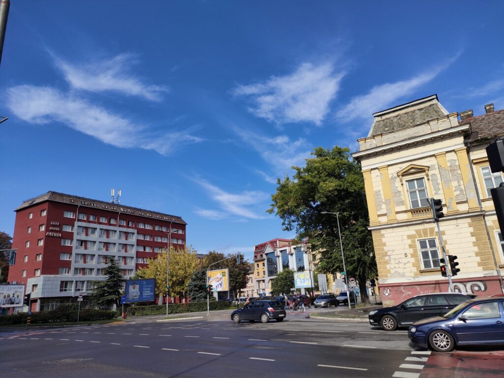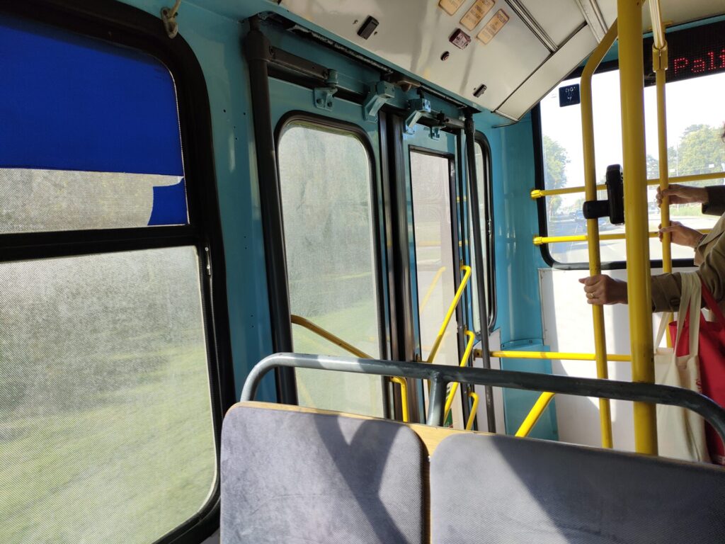 途中にある小さな街に全部停車 + 降りたい人が降りたい場所で降りていくので、105kmの距離なのになかなか到着しません。東欧でバスに乗るとたいてい遅れるので、余裕を持ったスケジュールにしておきましょう。