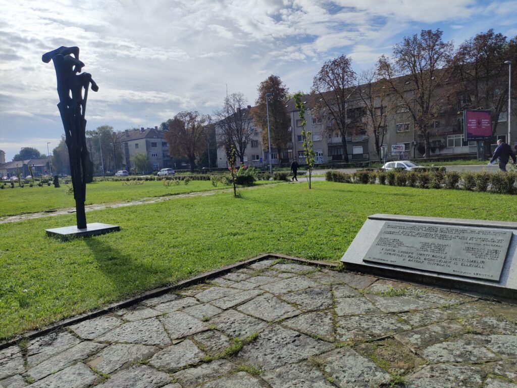 1941年ナチに対抗し、ここで亡くなったパルチザンの名前が刻まれた祈念碑。