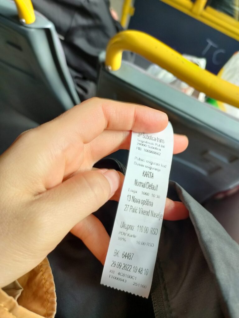 バス1回110din(約135円)。扉に大きく(手書きで)値段を書いてくれてたお陰でスムーズに購入できました。てか、この小さい切符めっちゃいいね・・・ノビサドのバス切符は20cm以上ある無駄に長いレシートで、機械の動作も遅いし運転手さん大変そうなのよ・・・。ベオグラードは電子カードが普及してるのに・・・。