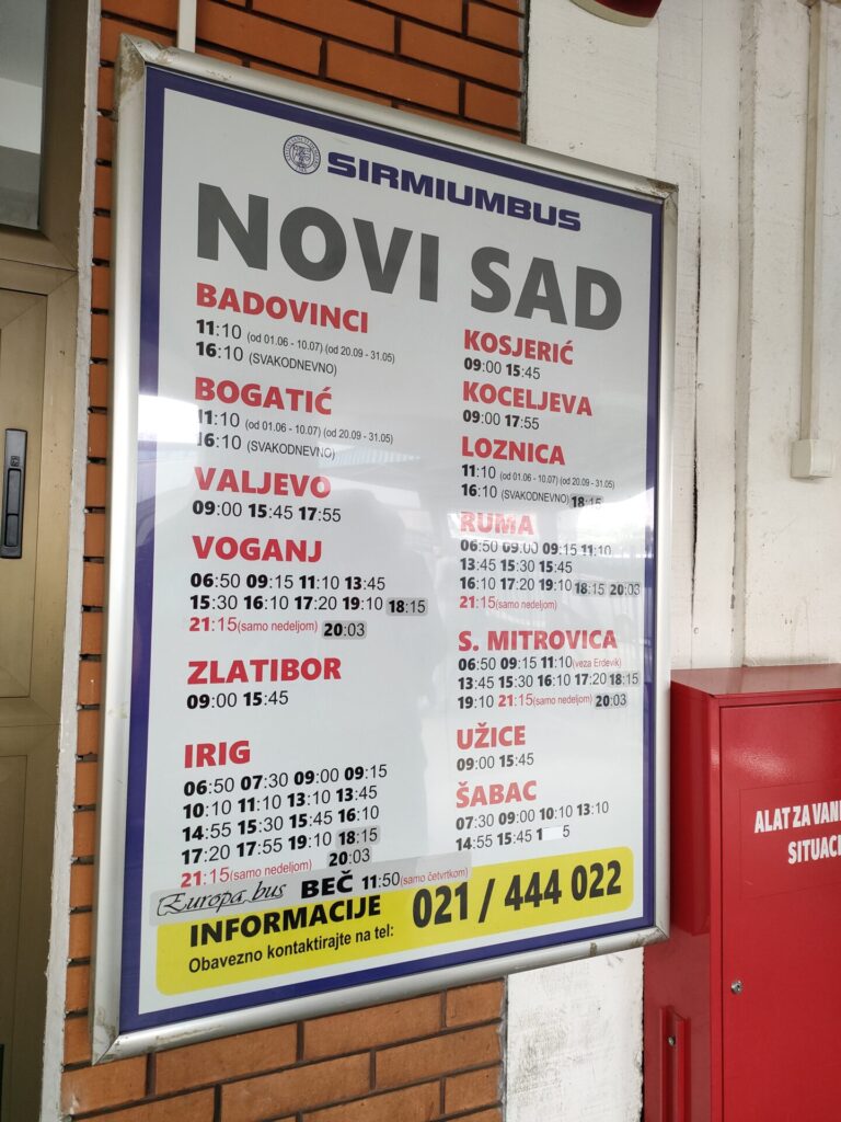 シルミウムじゃなくてヨーロッパバスっていう別の会社のバス使ってる。共同運行なのか、中古でバス買い取ったのか・・・。そしてこの時刻表、ぜったい最新じゃない・・・。
