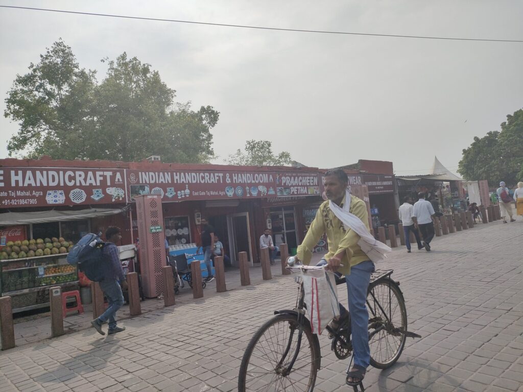 タージマハルから一歩外に出ると、何百ものしつこい客引きや物乞いであふれかえっていて、明らかに外国人とわかる私たちは恰好の標的…。タージマハルのあるエリアには目立った産業がないそうで、彼らも生きていく為に観光客に頼るしかないのはわかるんだけどさ…
