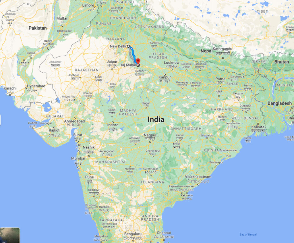 ニューデリーって、意外と北部にあるんですよね。上の地図の通り高速を使って3時間のタージマハールに行ってきました。今回も友人Yさんが完全ガイドしてくださって、なんの不安もない快適旅…マジ感謝しかないです。