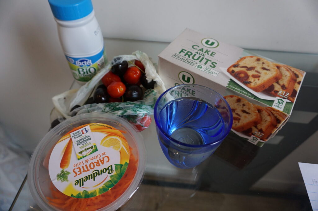 パリのスーパーで買ったもの。収入がない事で普段より更に貧乏性になってしまい外食できず。