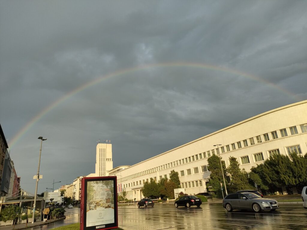 とある日の虹。ヨーロッパは空が広い場所が多くて好き。