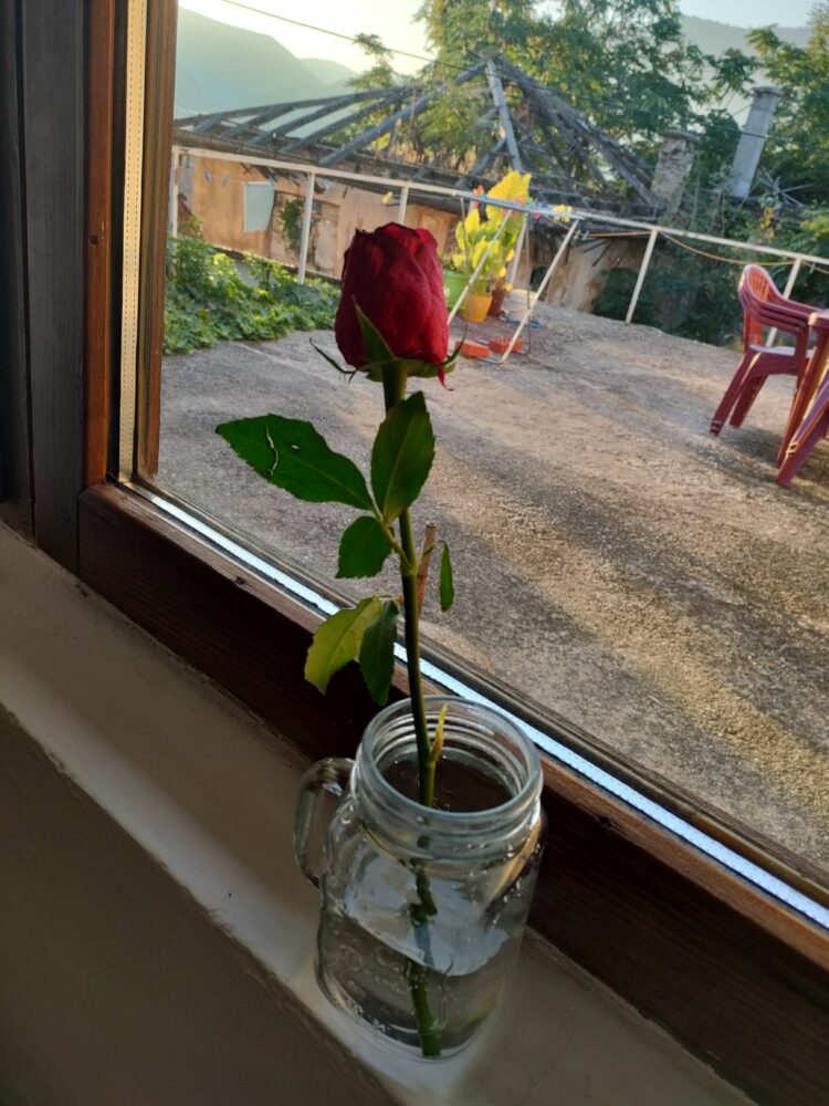 左のバラは、その二人が「出会いの記念に」とくれたもの。