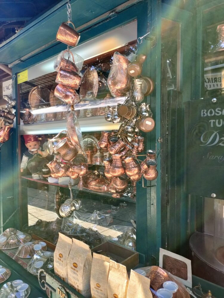ボスニアコーヒーのお店。青銅の器で飲みます。