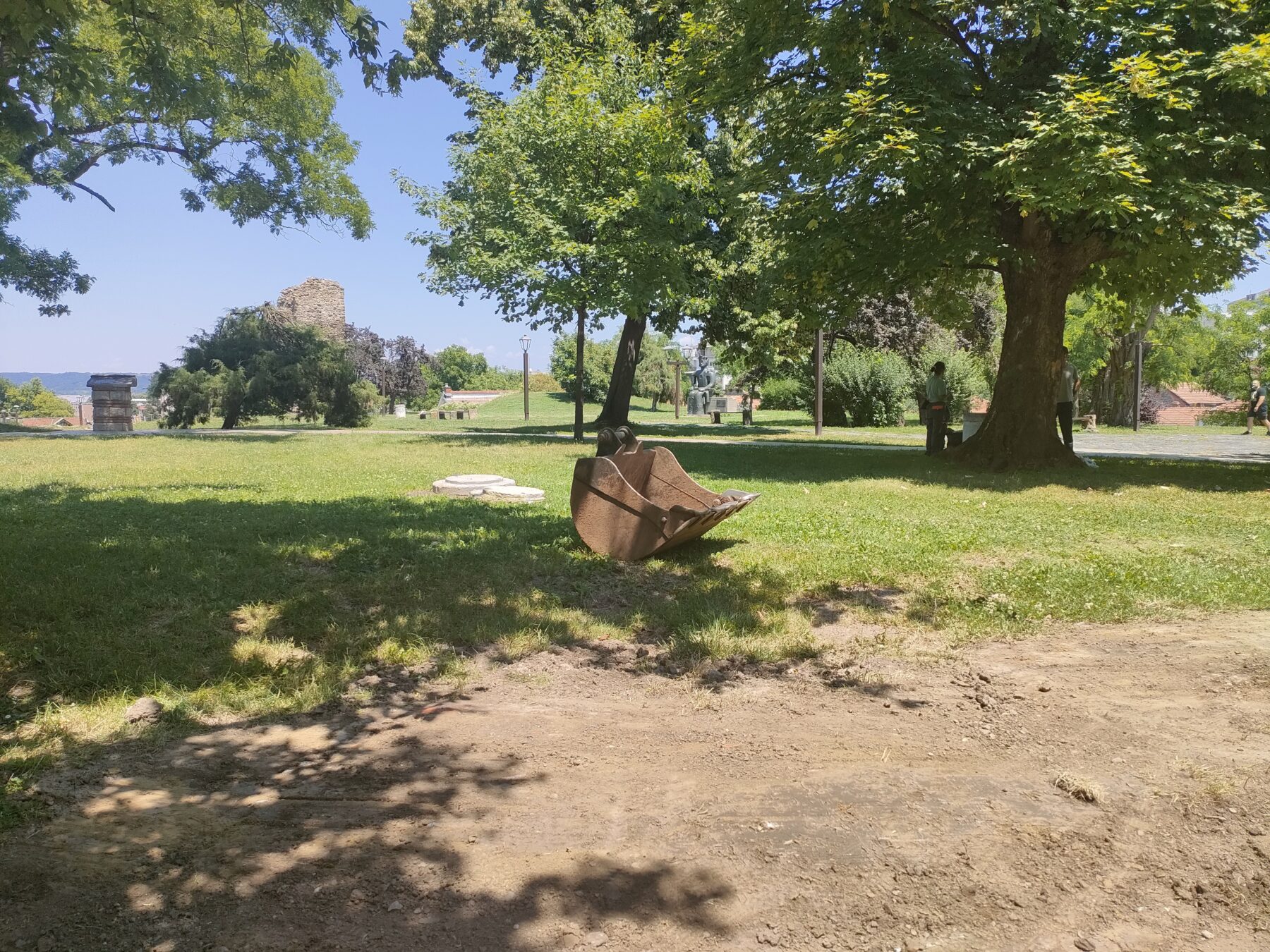 公園の整備工事をしてて、いろんな工具があっちこっち散らばってた。自由でよき。
